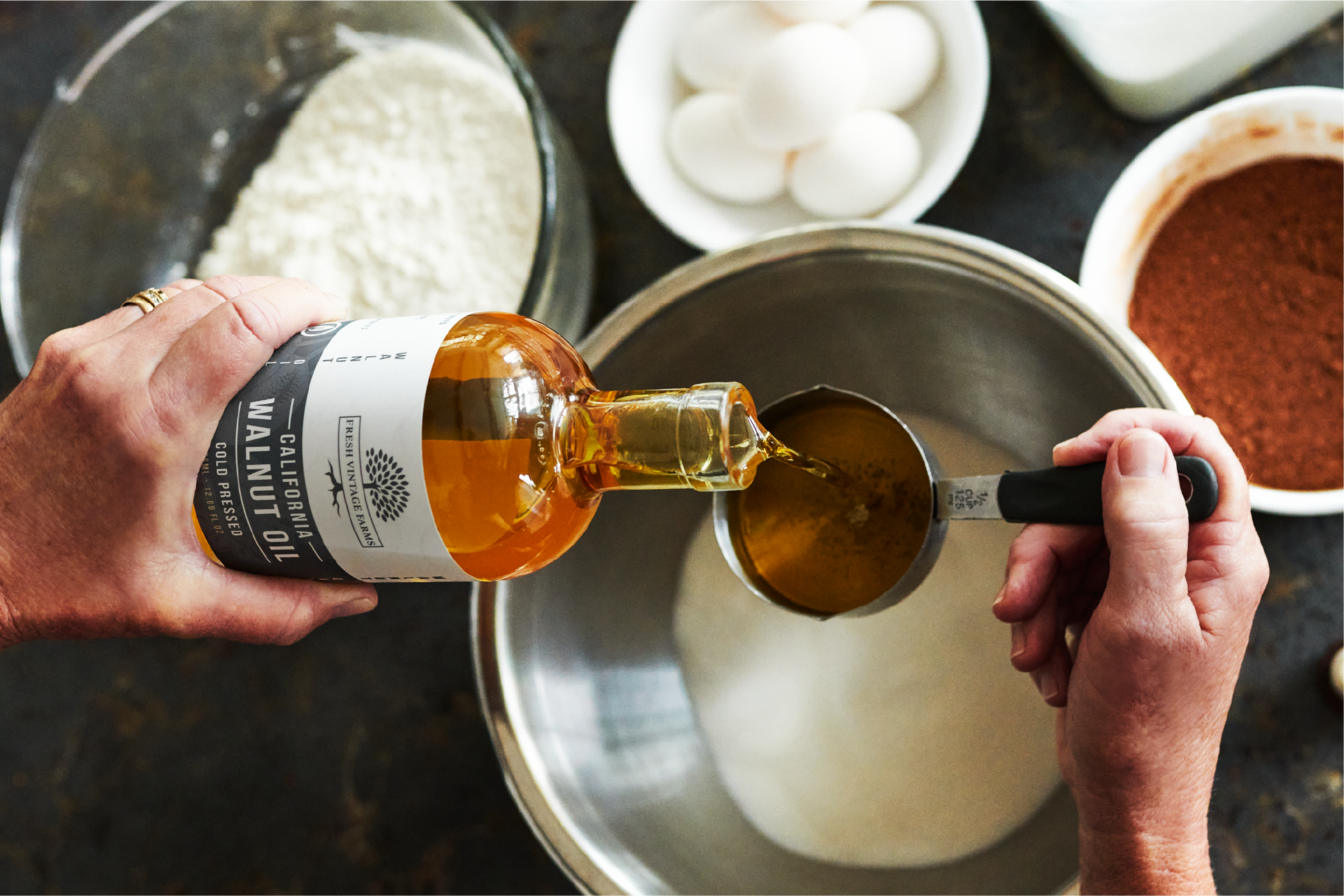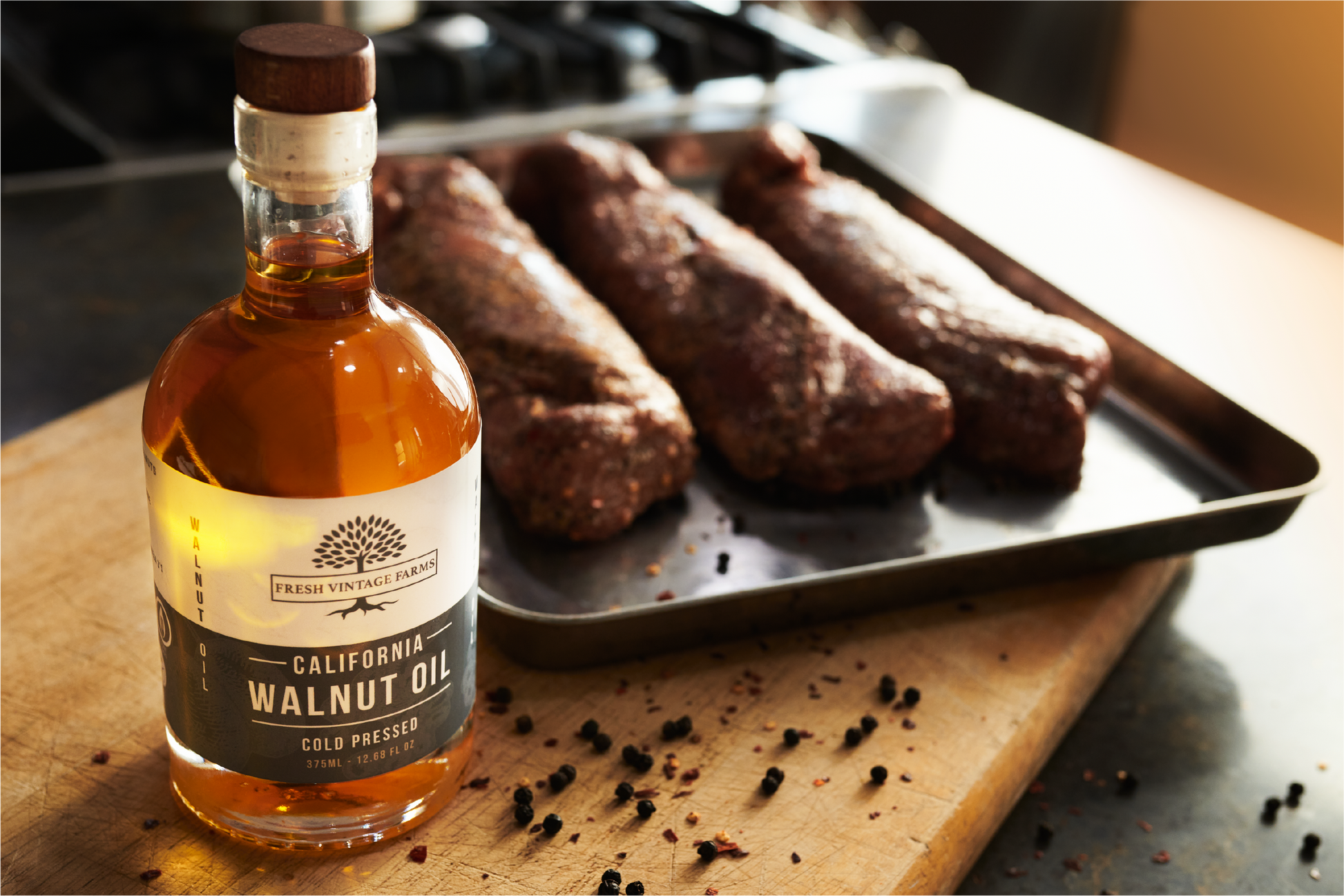 Unlike other refined Walnut Oils on the market that utilize rancid walnuts with high heat expellers and refineries, our Virgin Oils are Cold Pressed from fresh Walnuts, grown on ground that was proudly farmed on the forefront of environmental stewardship.